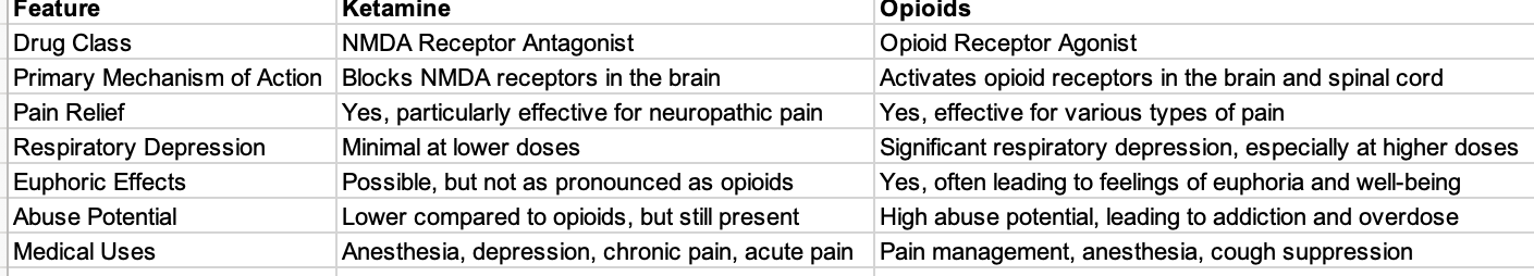Table: Ketamine and Opioids Comparison.